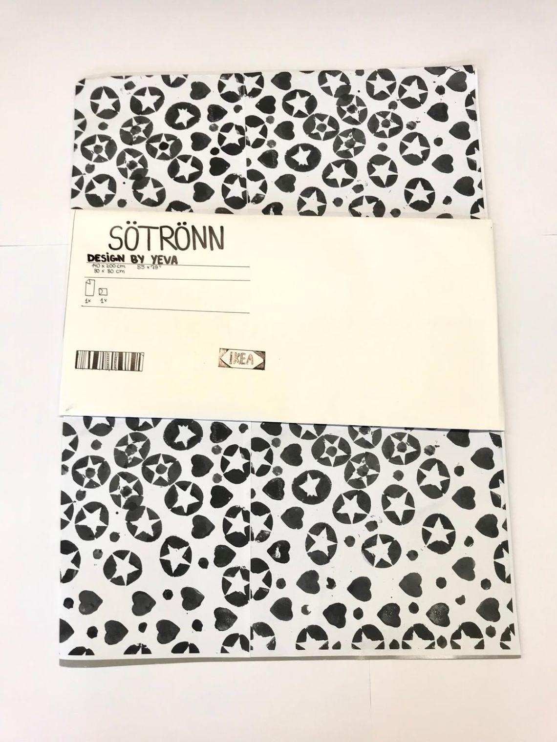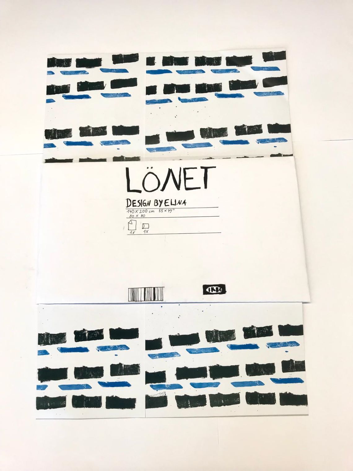 Die eingestellten Bilder zeigen Kartoffeldrucke, Alloverprints zum Thema Reihung, Streuung und Muster. Anschließend haben die Schülerinnen und Schüler Etiketten von Ikeabettwäsche gefälscht, wir finden täuschend echt.