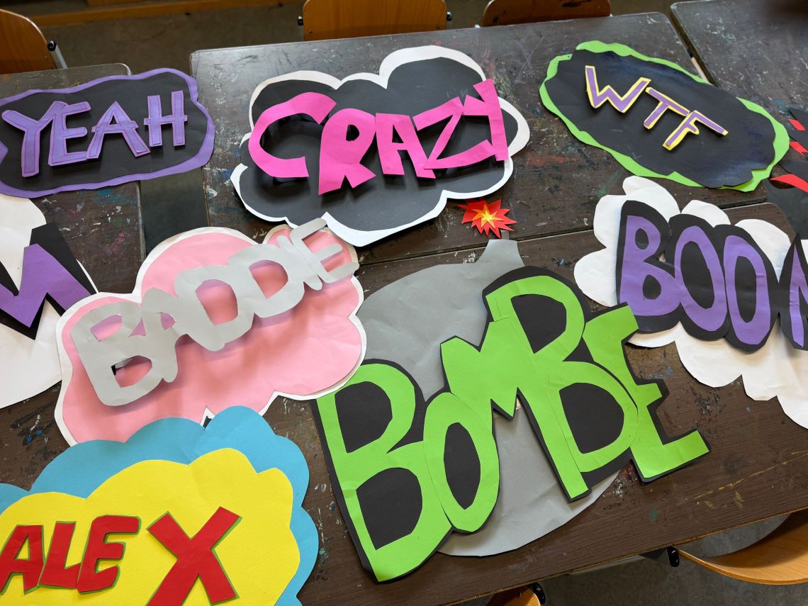 Im Kunstunterricht haben die Schülerinnen und Schüler des 7. Jahrgangs Pop-Art neu erlebt: Sie beschäftigten sich mit Lautmalerei aus der Comicsprache.
