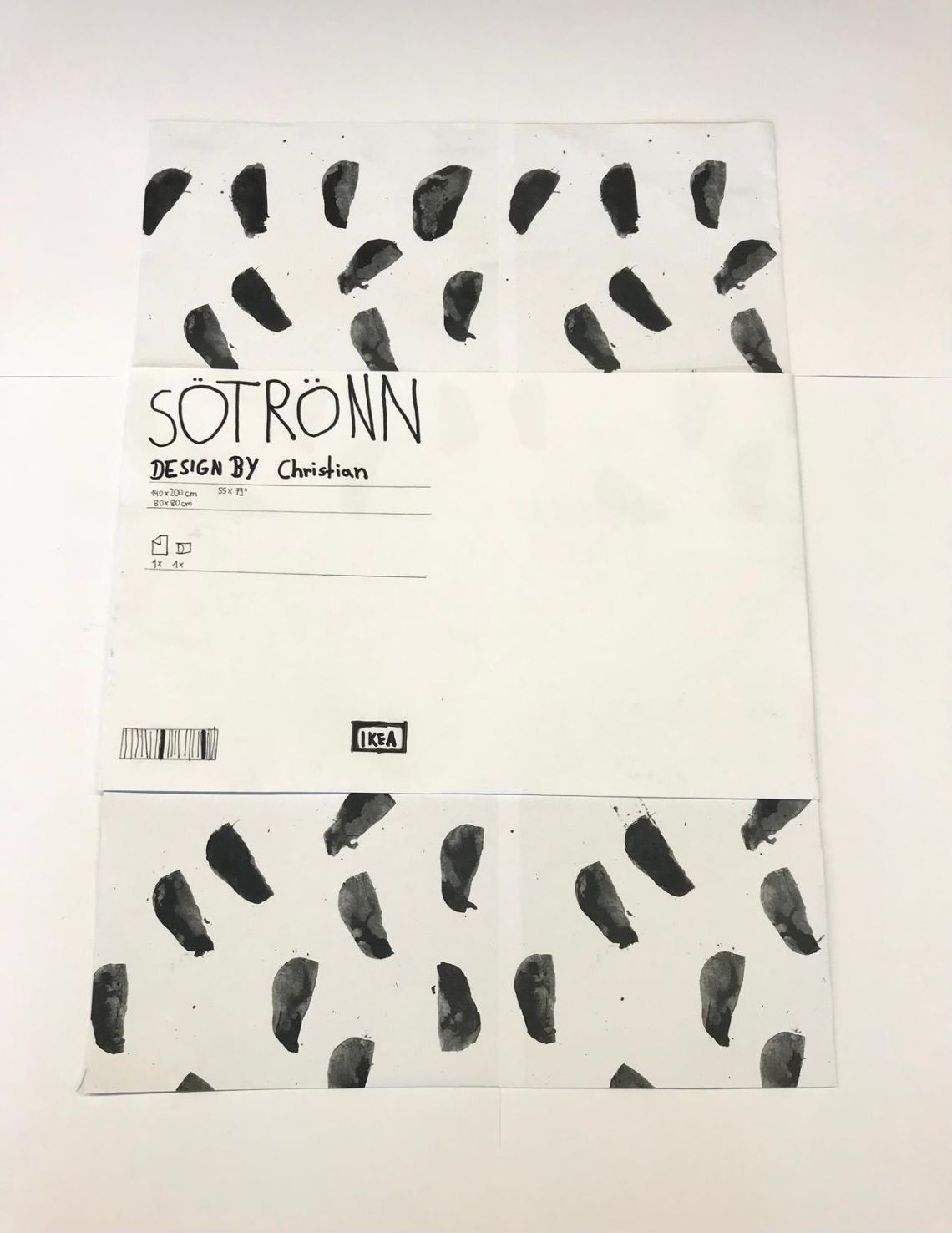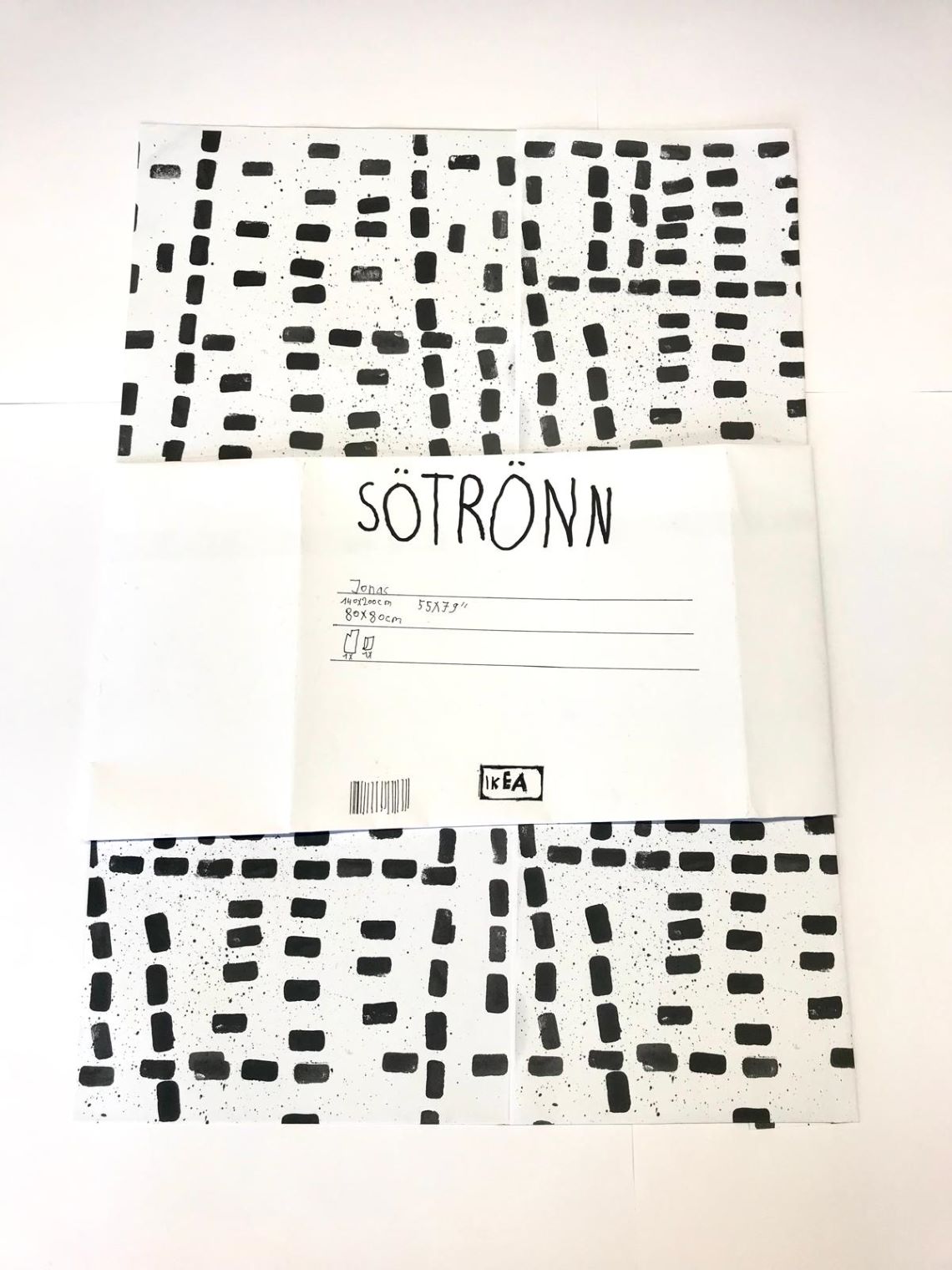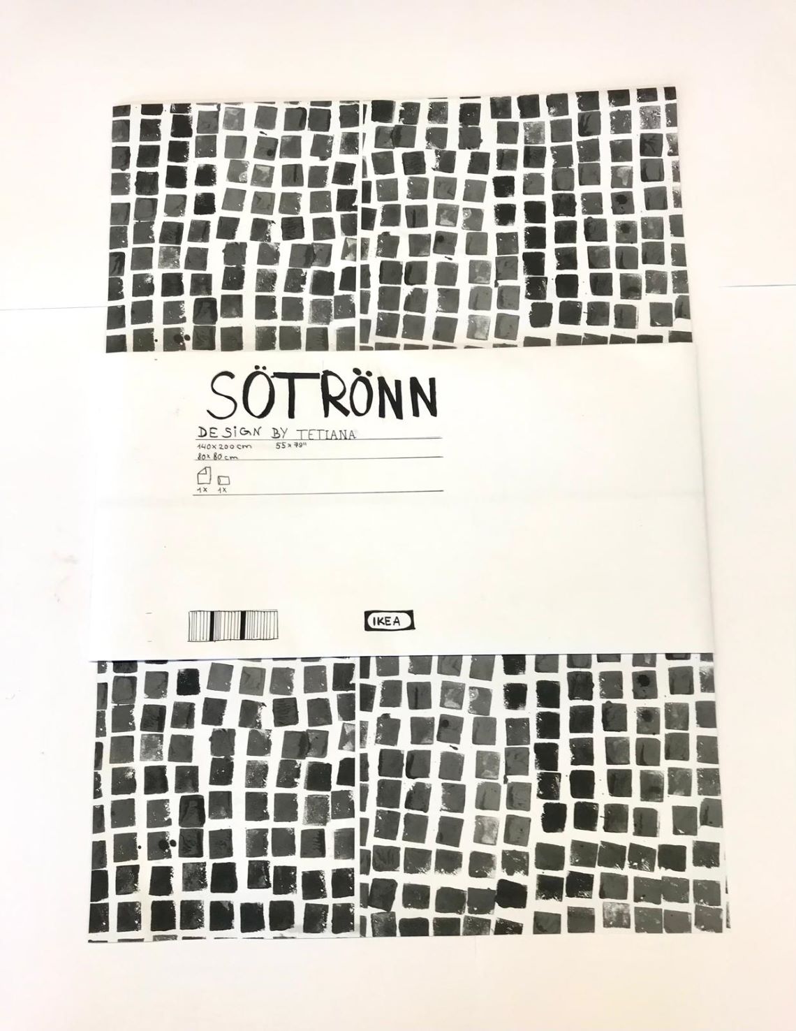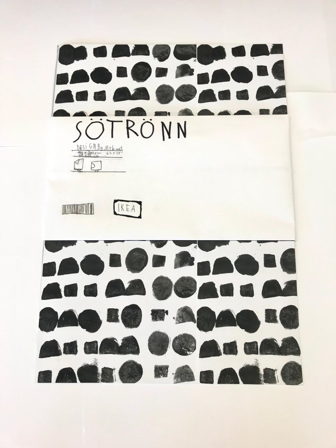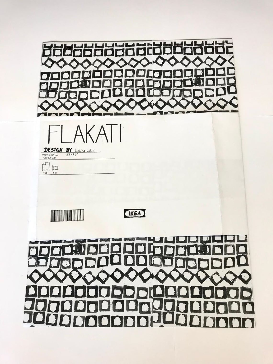 Die eingestellten Bilder zeigen Kartoffeldrucke, Alloverprints zum Thema Reihung, Streuung und Muster. Anschließend haben die Schülerinnen und Schüler Etiketten von Ikeabettwäsche gefälscht, wir finden täuschend echt.