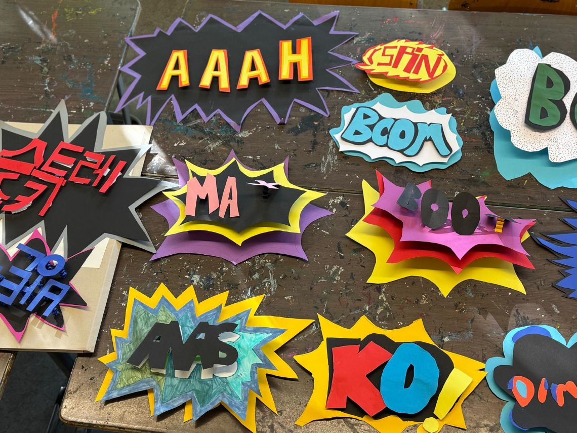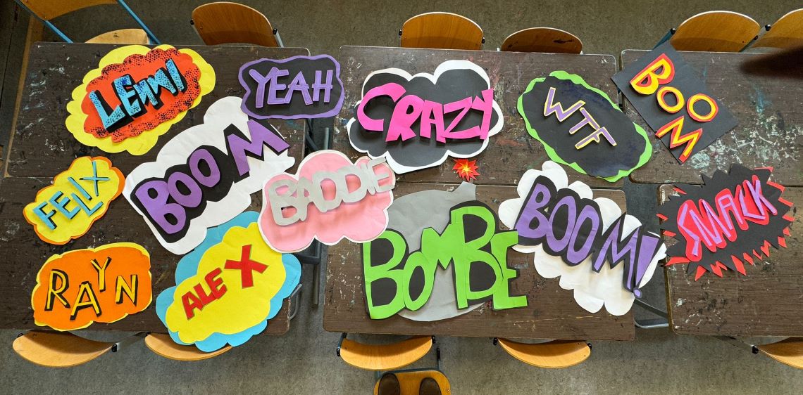 Im Kunstunterricht haben die Schülerinnen und Schüler des 7. Jahrgangs Pop-Art neu erlebt: Sie beschäftigten sich mit Lautmalerei aus der Comicsprache.